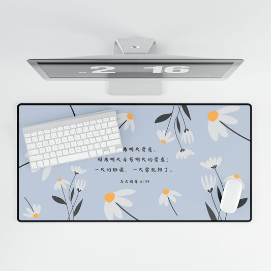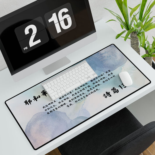 以聖經和福音信息為主題的桌墊,除了美麗的外觀之外,這些桌墊還能保護表面免受刮痕和污漬的影響,以及幫助您輕鬆整理桌面空間。這些桌墊擁有光滑的表面和防滑底部,耐用且不會磨損或起毛。支持光學和雷射滑鼠。